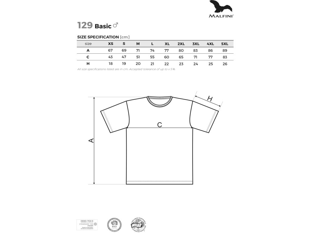 Pánské tričko MALFINI BASIC 129 Single Jersey, 100 % bavlna, silikonová úprava • tubulární střih • úzký lem průkrčníku z žebrového úpletu 1:1 s 5 % elastanu • zpevňující páska od ramene k rameni • silikonová úprava. Gramáž 160 g/m²